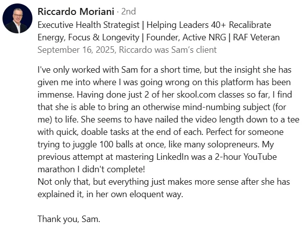 This is the kind of training that usually sits behind a serious corporate price tag. Fortune 500 companies pay Sam big money for exactly what she's going to show you on this call.